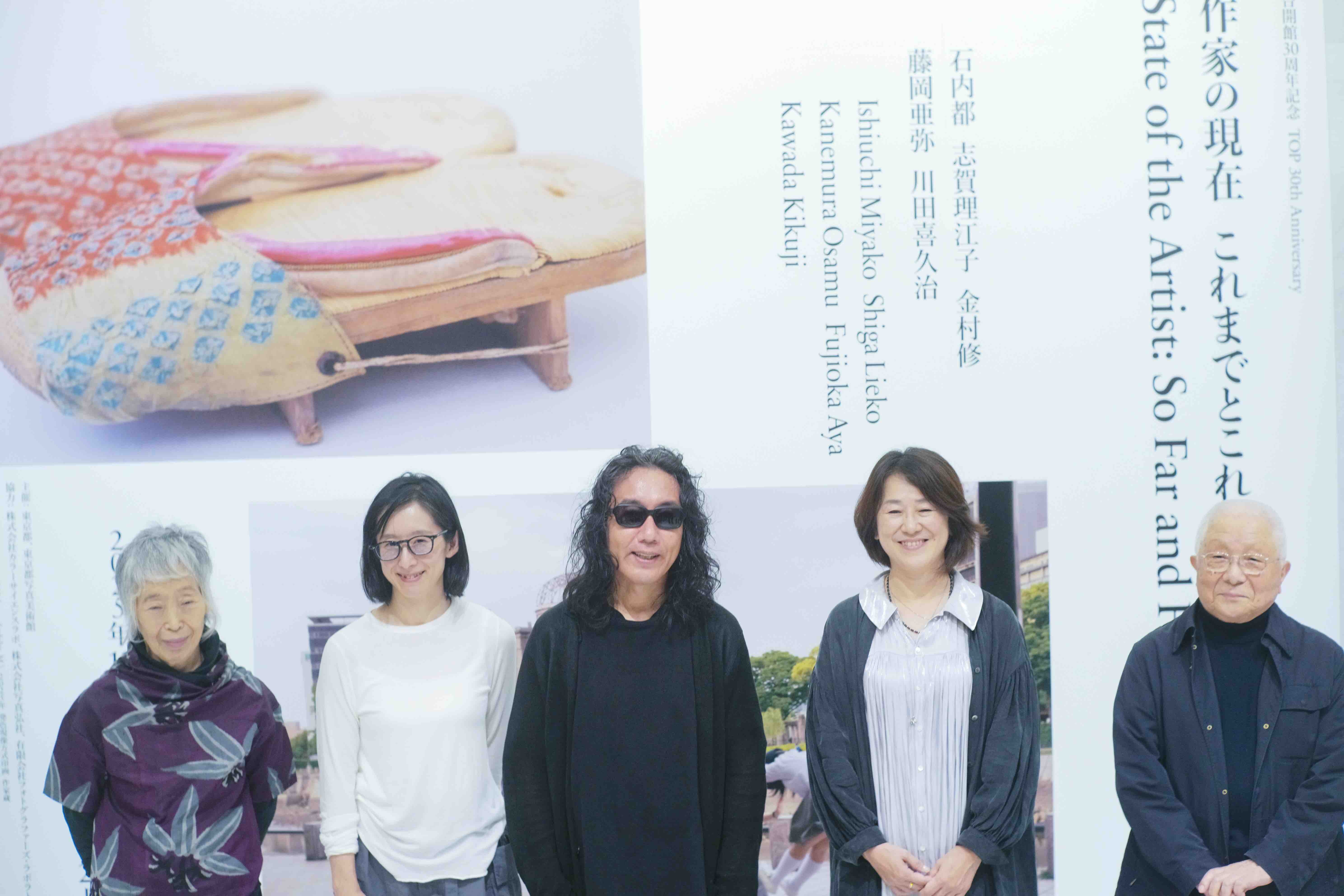 プレス内覧会にて左から出展作家の石内都氏、志賀理江子氏、金村修氏、藤岡亜弥氏、川田喜久治氏
